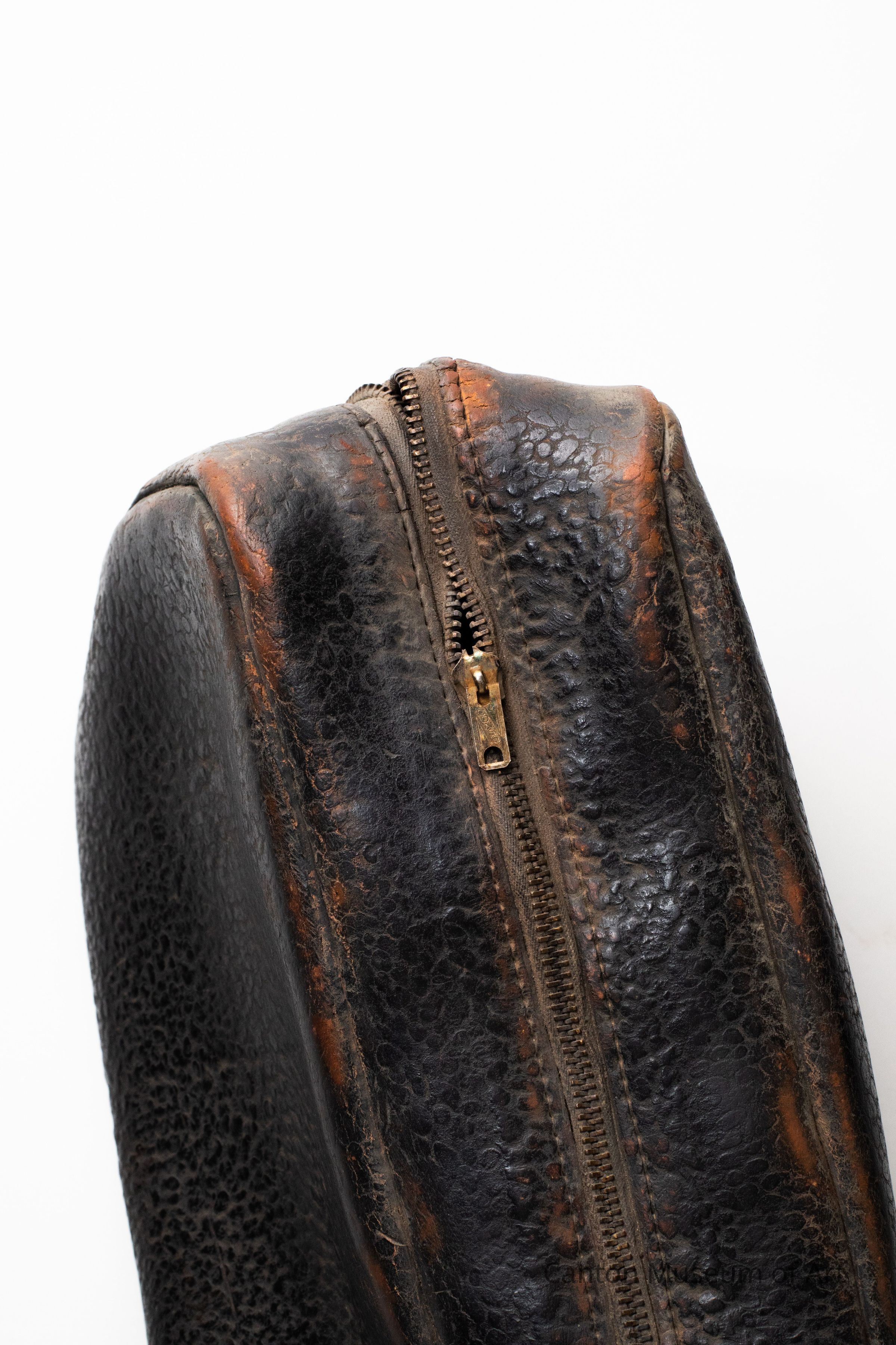 Levine said: “Leather is nice, because more than any other material, it forms a record of its own history. It develops permanent wrinkles, it takes on the shape of the wearer, it records areas of abrasion, and it records areas of soil. It therefore becomes an expression of time, evidence of a person’s existence.”