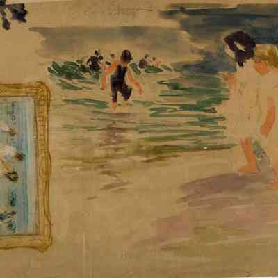 Potthast's oceanside scenes portray the middle class, and he himself came from a working class family. The sand and surf of the coast, as well as the newly created parks within New York City, allowed a release from the pressures of urban stress.