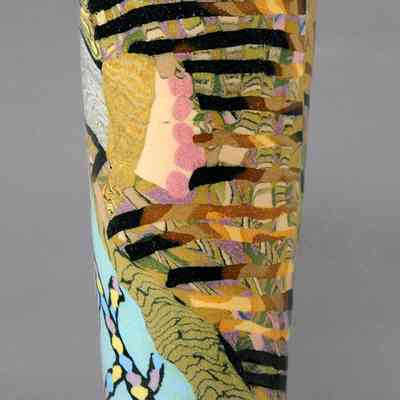 Peiser chose to work in relative isolation from other professional craftsmen in Penland, North Carolina, in the respective wilderness. "Finding my own way with clay was easier for me because I was out of touch with other current potters and schools of pottery." - Jane Goslin Peiser Peiser considers her pieces to be utilitarian. Her work is very individualistic, using the millefiore technique. She uses white porcelain clay and colors it with stains and oxides. She makes a sketch first and then proceeds to construct the image in clay, rolling out colored slabs to represent the various parts of the image and then piling them on top of each other. She keeps layering and packing these all together until she has what looks like a big loaf of bread. Peiser slices a piece off with a wire and rolls it larger with a rolling pin. She is now ready to start building a pot inside a plaster mold shape. After the piece is dry, it is sanded and bisque fired, then glazed and fired in a salt kiln. One more low fire firing is done after details are painted on with china paint.