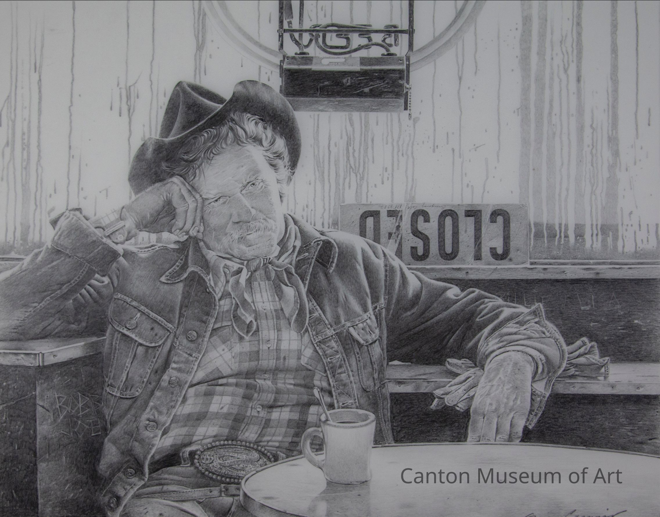 I am trying to depict in this lithograph a national champion who has washed down a bowl of chili with a couple cups of diner coffee as he quietly reflects on this ragged lifestyle that has left him alone 'down the road.'"