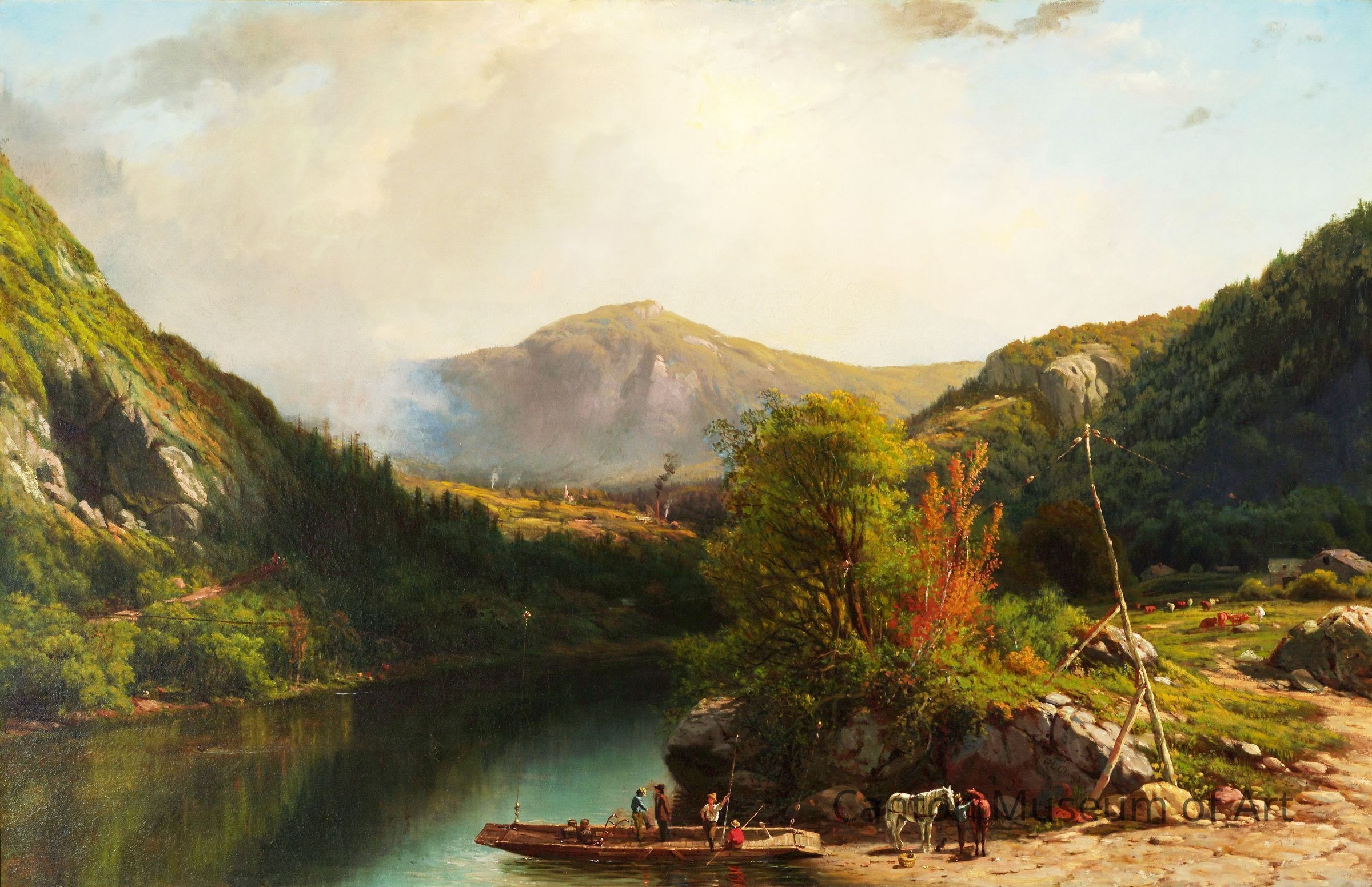 Clough’s love of painting American landscapes is evident in the grandiose beauty of "Ferry Crossing." While most of his paintings depicted the area around Auburn, New York, Clough also painted landscapes throughout New England, Pennsylvania and Ohio – capturing a time and place in American history. His landscape paintings are sensitive, emotional scenes with an emphasis on natural lighting and atmosphere.