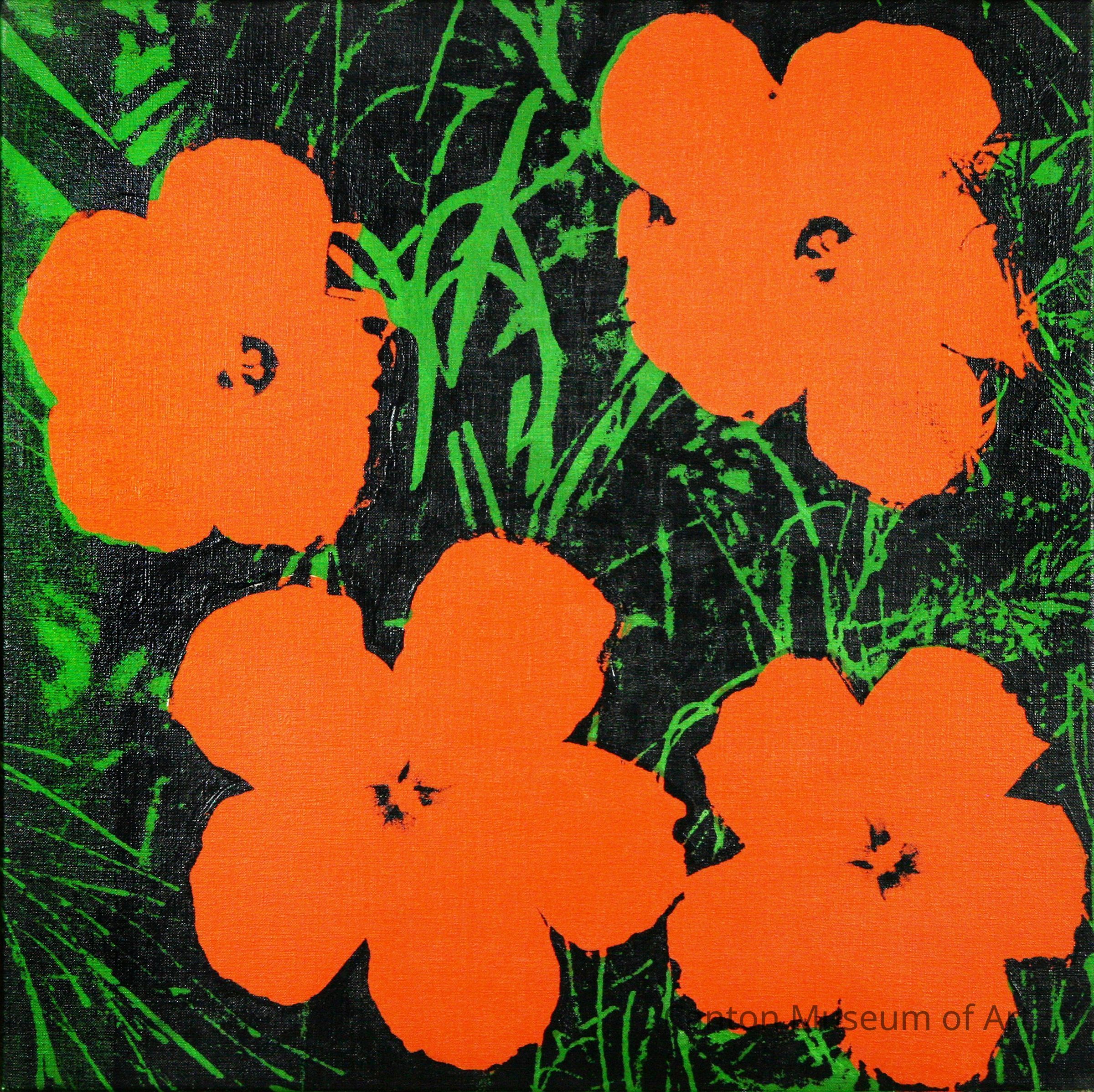 "Flowers" marks Warhol's departure from everyday objects and celebrities, which took his work in a new direction and surprised the art world. "Flowers" was first exhibited in the Leo Castelli gallery in New York in 1964. Warhol used a photograph of hibiscus blossoms he found in the 1964 issue of Modern Photography to create these prints, and found himself in his first lawsuit over the usage. Between June and September of 1964, Warhol's studio – the Factory – was a production line for "Flower" paintings of different sizes. Throughout this phase of his artistic development, Warhol pioneered and refined the screenprinting process that he had made his own. The production underwent three phases: firstly, the forms of the flowers were stenciled and colored paints were applied by hand onto the primed canvas; once dry, the flowers were masked and the green acrylic of the surrounding ground was applied with a wide brush; finally, the screenprint image was applied over the dried image. Over the course of painting this series of images, Warhol's choice of paints would also include the more fluorescent Day-glo colors. Ten days prior to the Castelli exhibition, Warhol delivered 45 "Flower" paintings in the 24-inch format to the gallery, from which 28 were hung in the show in four rows of seven, from floor to ceiling. Warhol's interest in nature was lifelong. As a child he drew animals in science class at Holmes School, kept a flower garden in the family’s yard, and drew in Schenley Park and Phipps Conservatory. In college, he went to the zoo in Highland Park to draw. Later in life Warhol created his Cow and Fish Wallpaper, the film Sunset, and hundreds of paintings, prints, and drawings of flowers. Warhol created more than 10,000 images of flowers over the course of his career. Speculation abounds as to why Warhol depicted flowers, from symbols of mourning following the assassination of President John F. Kennedy to evoking the Flower Power movement of the 1960s, to Warhol's interest in fashion and floral prints. As Warhol once said, he set out to create things that were simultaneously infused with meaning and devoid of it.