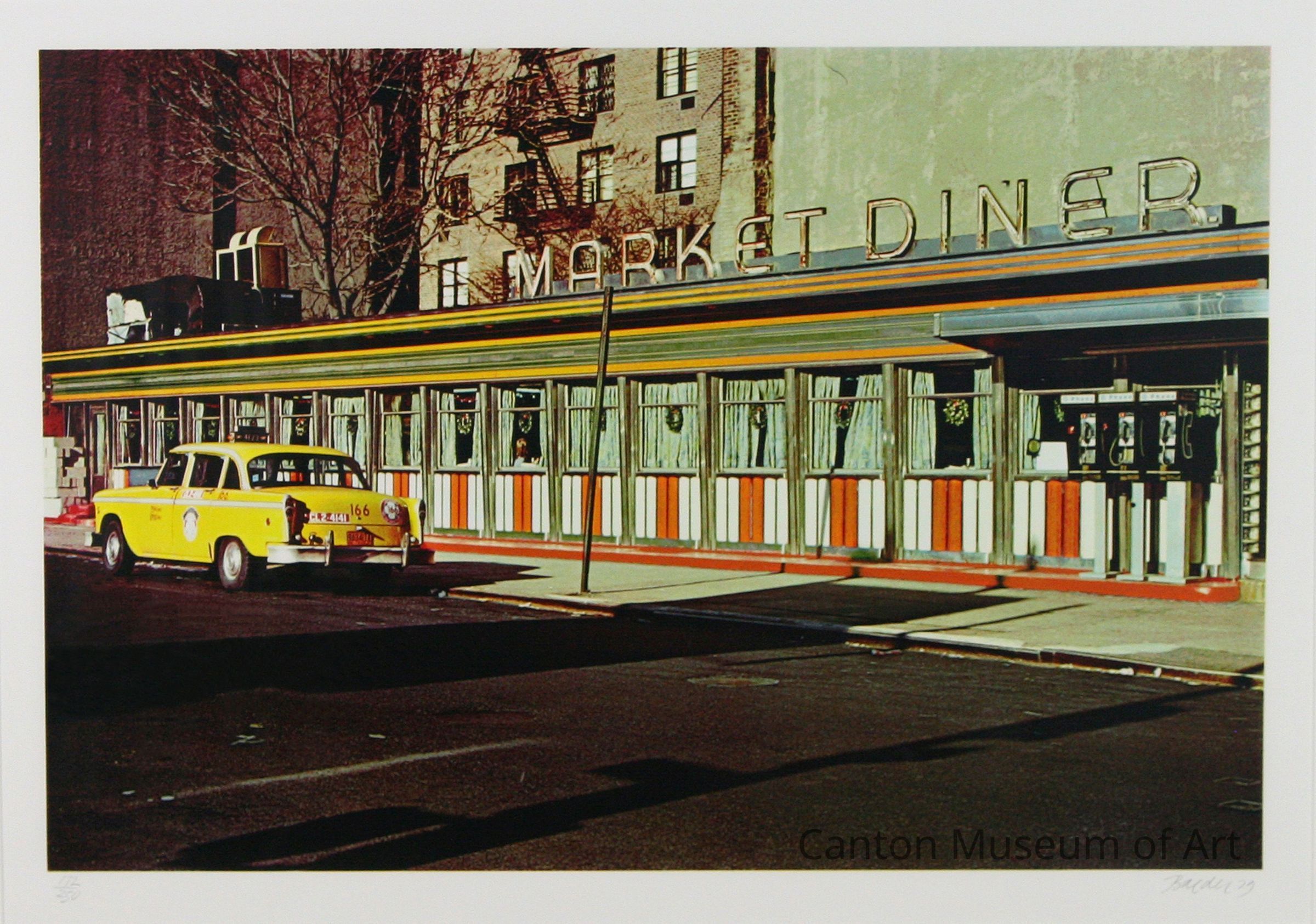 Other Photorealist artists chose various aspects of popular eateries as subject matter for their paintings, but none with the same dedication and rigor as Baeder. It can be argued that Baeder single-handedly developed the diner image into an American icon. With tenacity and consistency, he made pilgrimage after pilgrimage to lovingly capture, first with his camera, then in paint, then prints, the images of hundreds of diners across the United States. As we look at Baeder’s images, we become aware that the diner images are a precious social record of a fast-disappearing American subculture.