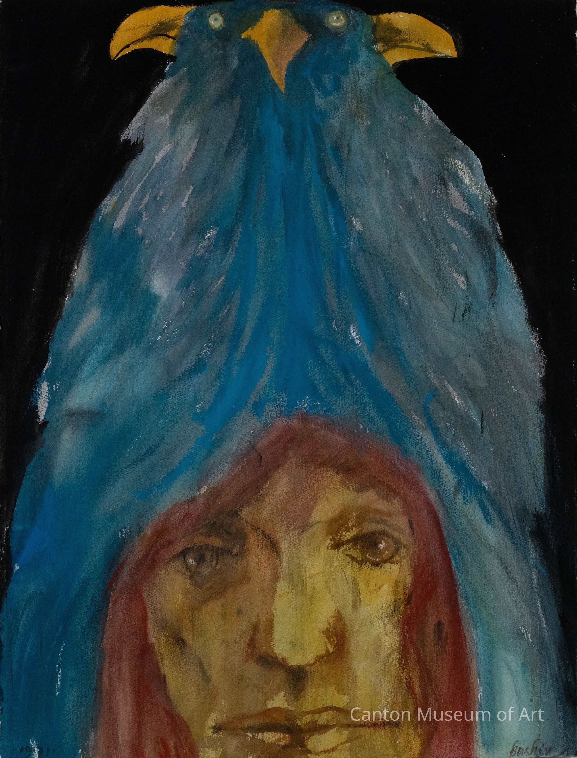Leonard Baskin’s surreal portraits combining the human and animal worlds have made him one of the artistic masters of his time. This watercolor was inspired by a series of works based on Sibyls, or prophets, that he completed in 1991 to accompany a book of poems by Ruth Fainlight. Baskin's interest in Greek history, philosophy, and mythology led him to include the Sibyl, the prophetic female from Greek mythology, in many of his sculptures and paintings.