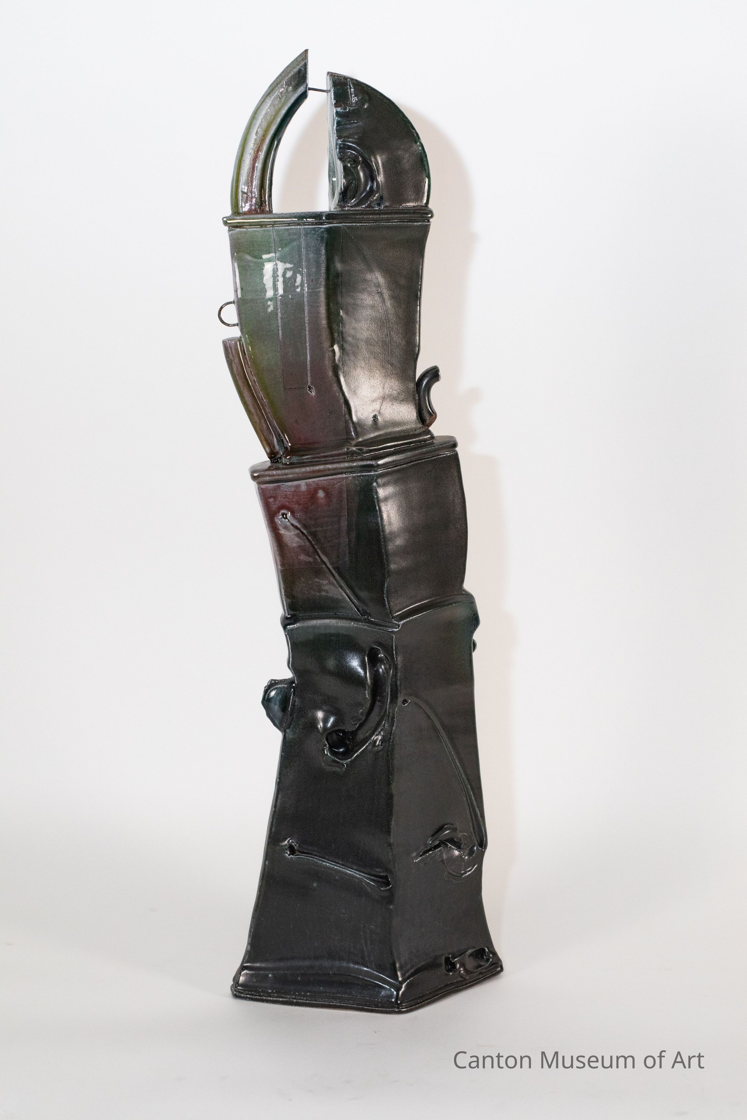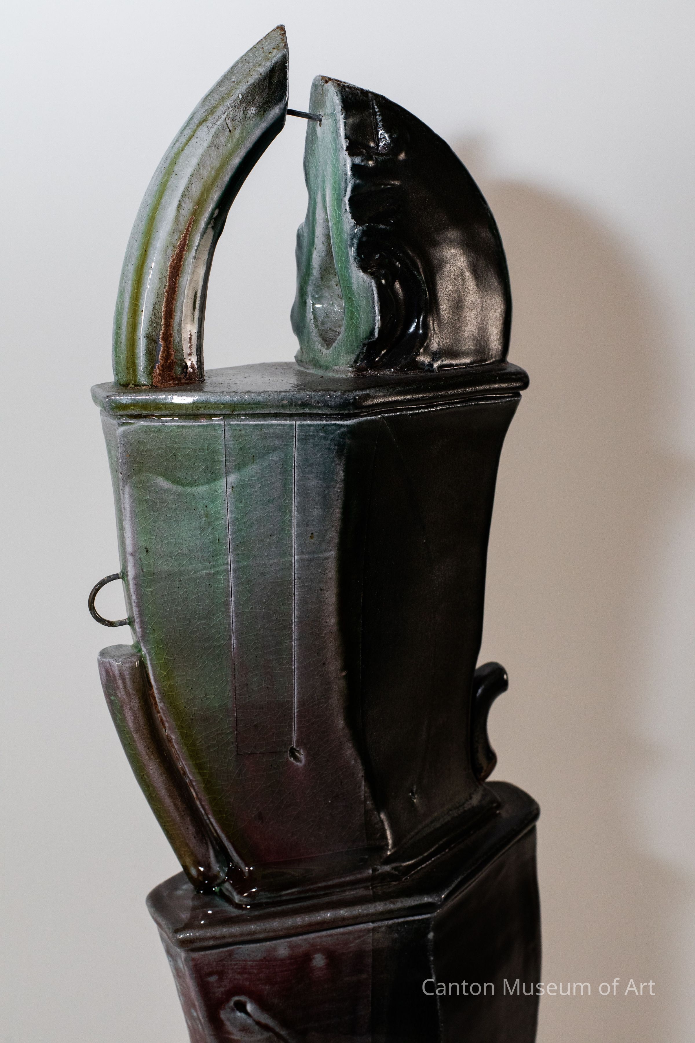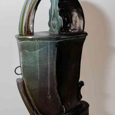While traveling through Europe as a symposium artist in the early 2000s, Brad Schwieger was deeply impressed by the eclectic architectural styles he encountered — from medieval to Art Nouveau and Neo-classicism. He said, "I find an interesting parallel between architecture and pottery. Like architecture, pottery deals with elements of form and structure, the interior and exterior, utility and containment, surface detail and adornment. I have attempted to synthesize these interests and produce work that shares the minimal and complex, the miniature and monumental, the formal elements of design, the implied and the possibility of actual function."