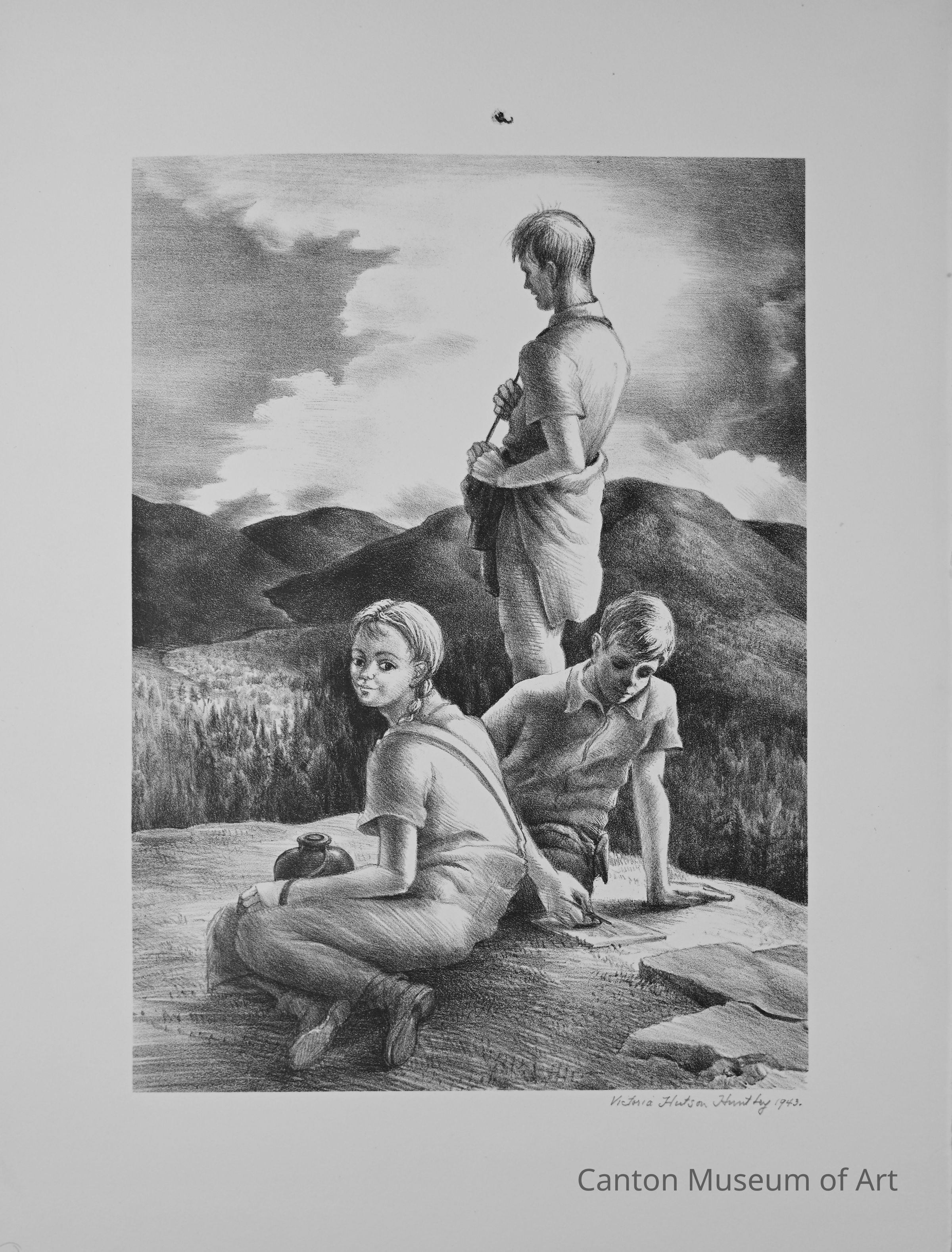 Huntley depicted the human figure from her early years, beginning in 1932 with solitary figures. In 1936, she created group genre scenes in which figures interact with each other.