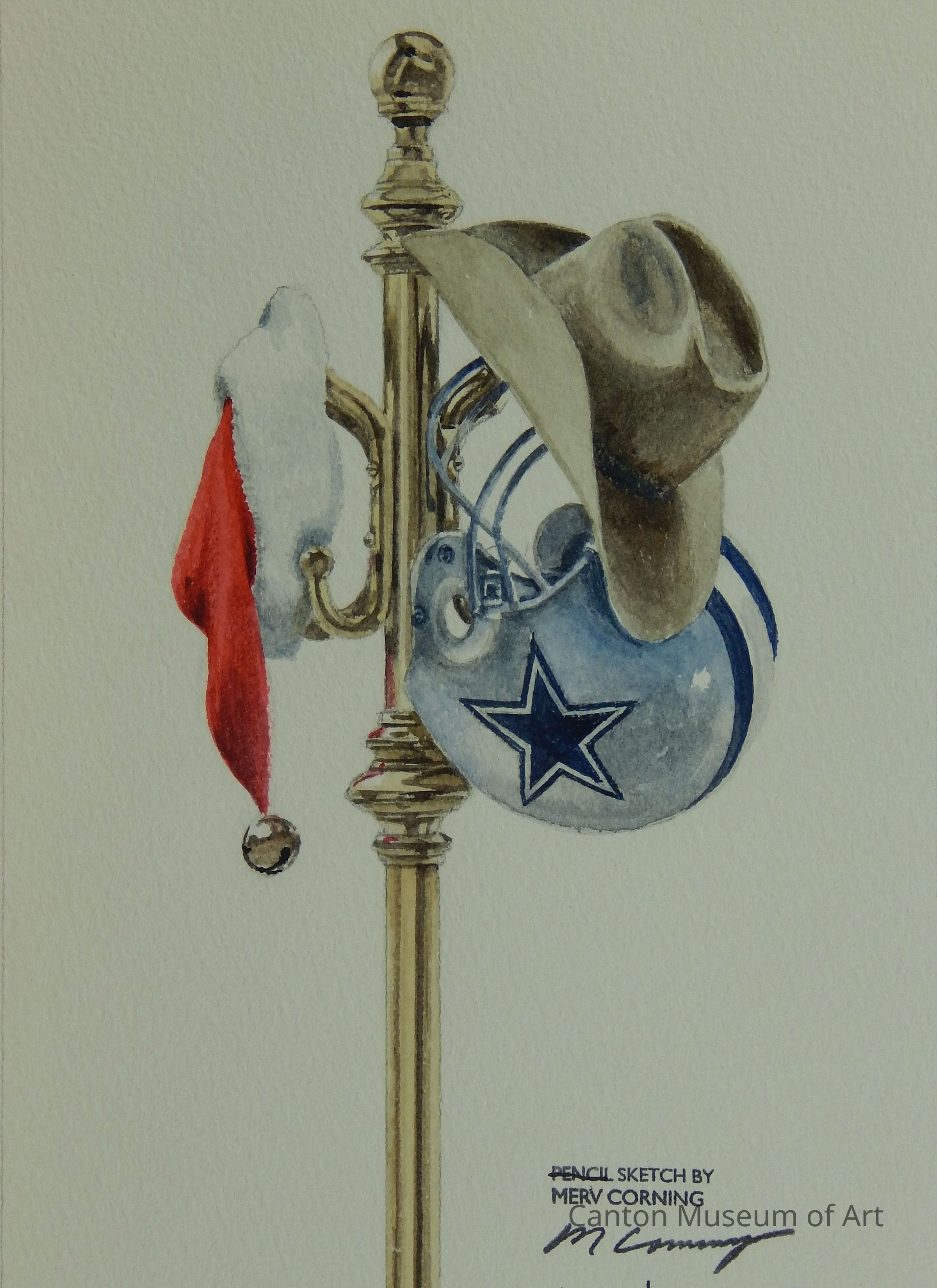 Three Hats on a Coat Rack: Santa, Dallas Cowboys Football Helmet and Cowboy HatEntry/Object ID