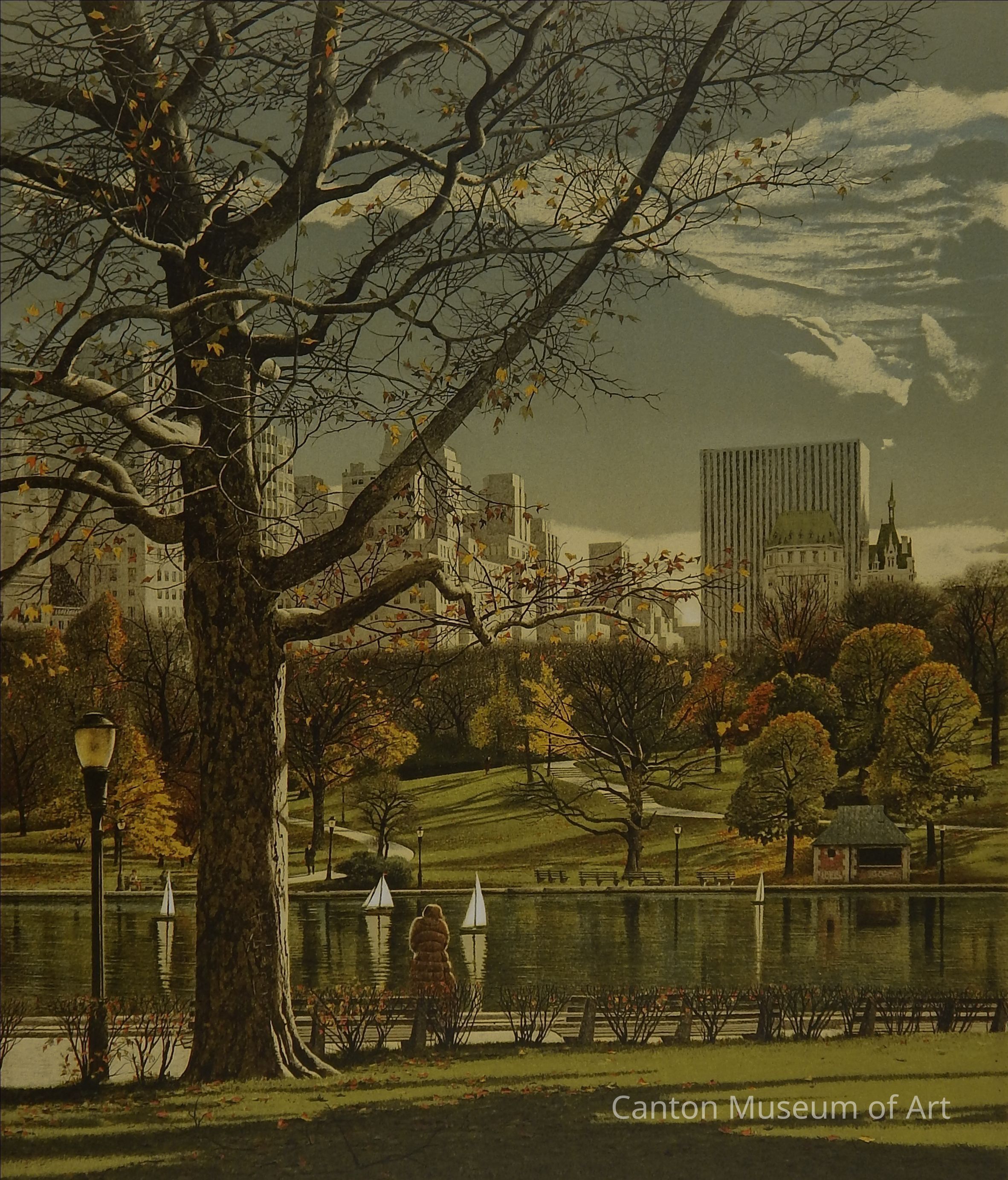 plates was tedious and had to be close to perfect. From these plates proofs were pulled, corrected, approved, and signed by Corning. When the final edition was printed, the lithographic plates were destroyed. "Toy Sailors" gives us a glimpse into New York City’s Central Park, perhaps while Corning was there visiting The American Atelier.