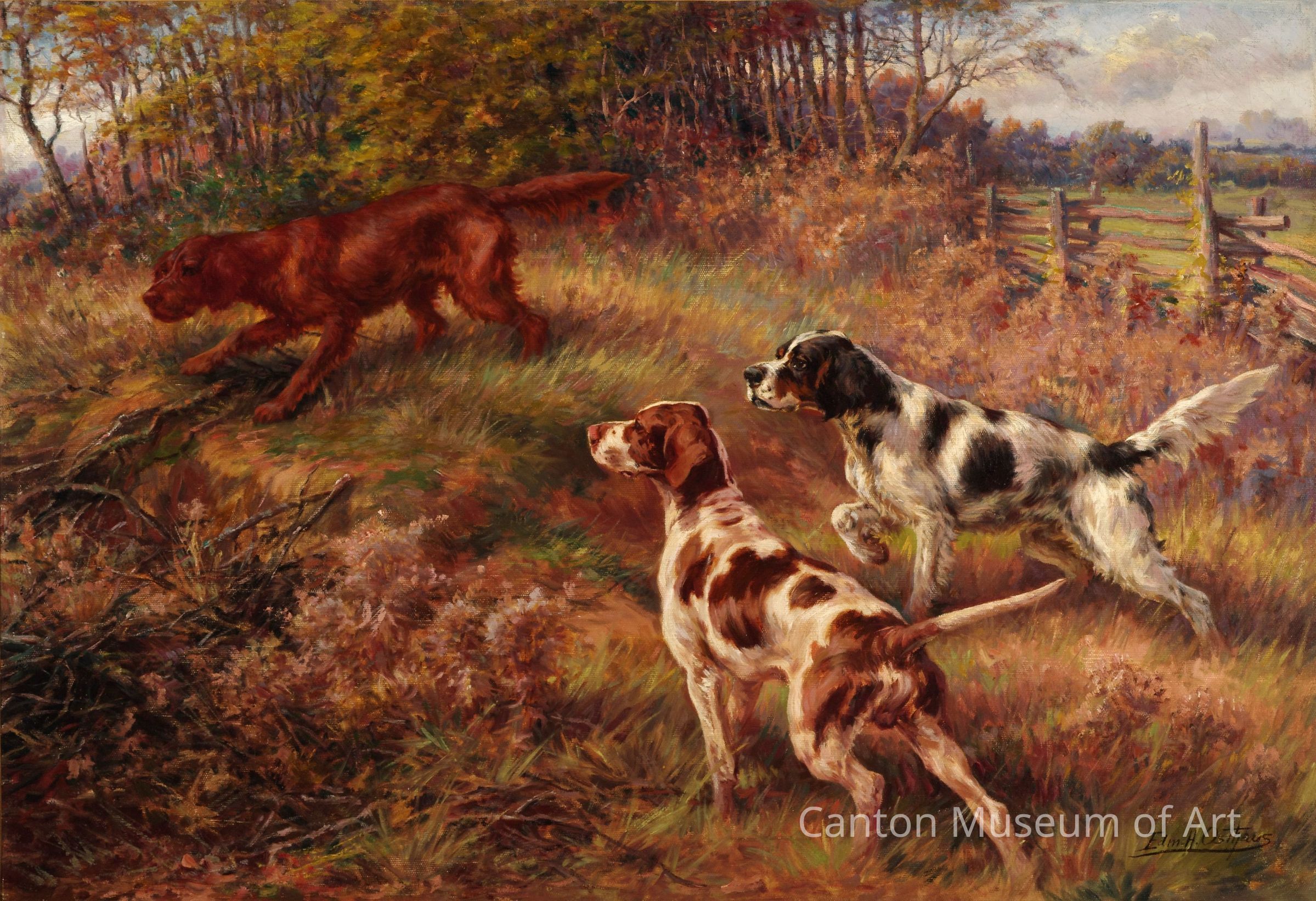 Soon after moving to Ohio from Wisconsin, Osthaus came into national prominence as a painter of bird hunting dogs (setters and pointers). As time went on, he created more and more paintings of bird hunting dogs, painting the winners of the National Field Trial Championships from 1896 through 1910. The series included some of the most famous bird hunting dogs in the nation's history.