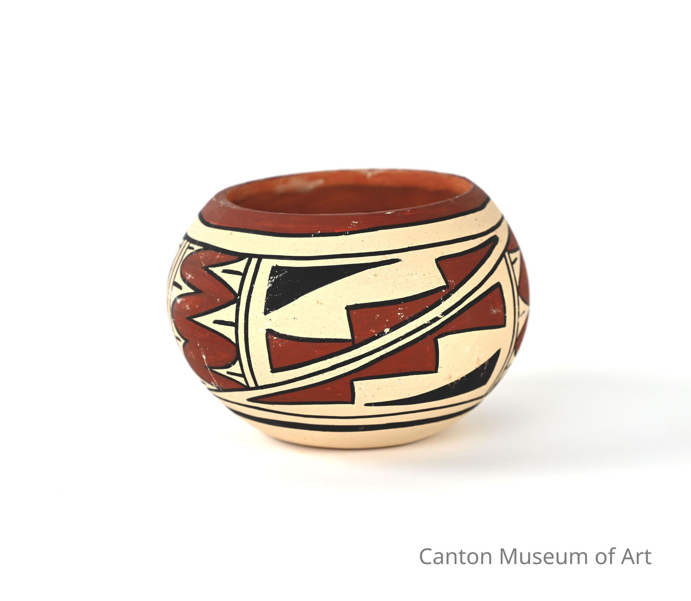 The Jemez Pueblo is located in Central-Northern New Mexico. The pottery produced there is known for its distinctive earth-tone colors blending stone polished and matte finishes with painted and etched designs. The art of Jemez Pottery making was revived in the 1800s after being lost during the Spanish conquest of the American Southwest. After being developed in the traditional style, the pottery has been enhanced over the generations to include several wonderful clay colors and traditional shapes. Jemez Pueblo Pottery has also been influenced by later generations by polishing and incising the pottery, fine line painting, inlaid stonework and storyteller figures.