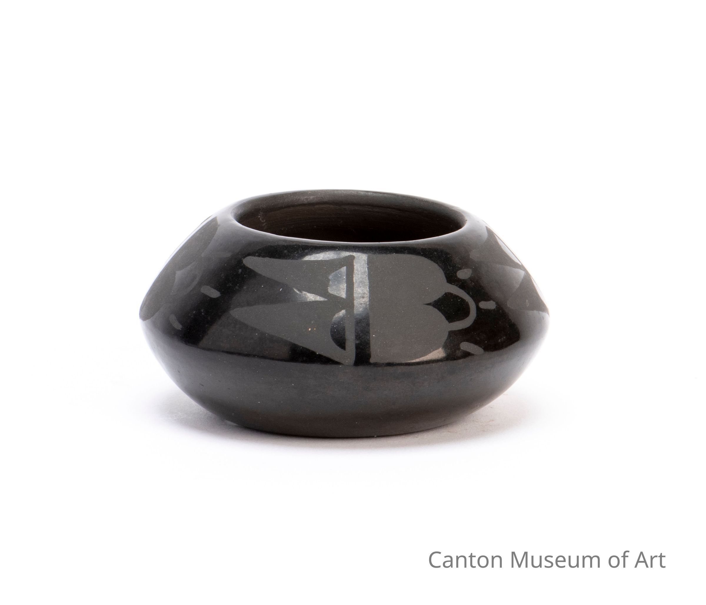 Though the artist is unknown, this work is unmistakably from the The Santa Clara Pueblo in New Mexico, known for their glossy black pottery and representational designs. This Pueblo has a rich legacy of pottery-making and is home to one of the most vibrant communities of potters creating high-quality, traditional vessels. Their handcrafted blackware is among the most well-known and has been produced since the late 10th century, pioneered by Maria Martinez.