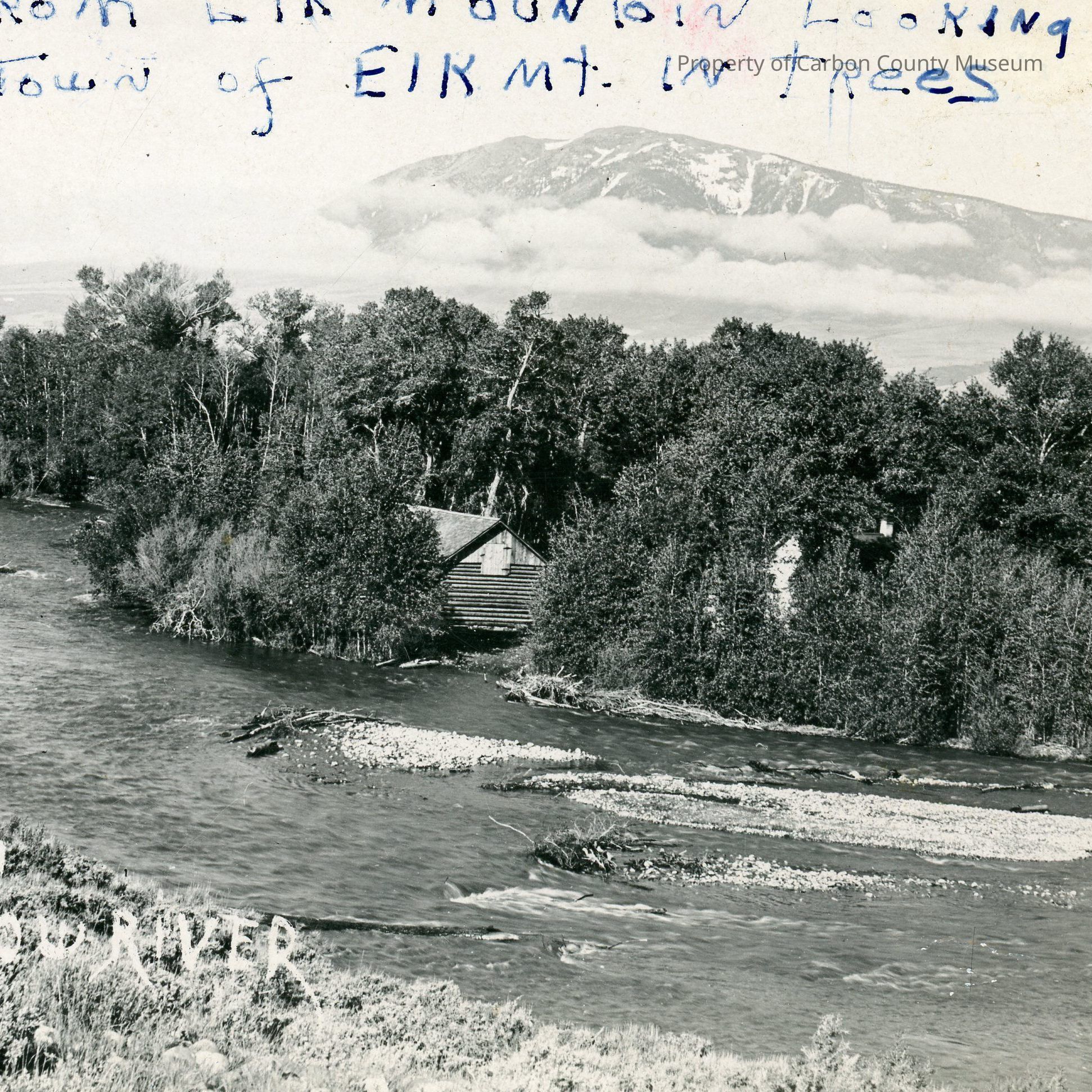 Written in blue ink on emulsion on top edge; "Taken from Elk Mountain looking down on River & town of Elk Mt. in trees".