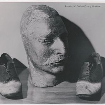 Written on the back in blue ink:"The plaster cast of Big Nose George's head[.] The shoes made from his skin for Dr. John E. Osborne who was assistant to Dr. Thomas Maghee. Dr. Maghee was the U.P. surgeon (physician) here at the time Big Nose George was hunt in 1881[.] U.P. picture[.]"