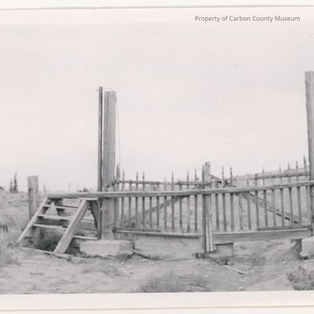 Written on back in pencil: "Gate to Carbon Cemetery 8-20-57" by Pearl Holmquist".