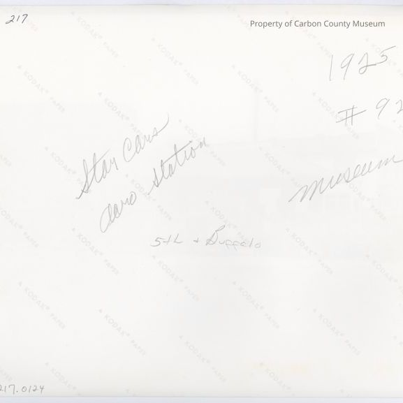 Written on back in pencil: "Star cars" "Aero Station" "1925 #92 museum" "5th & Buffalo"