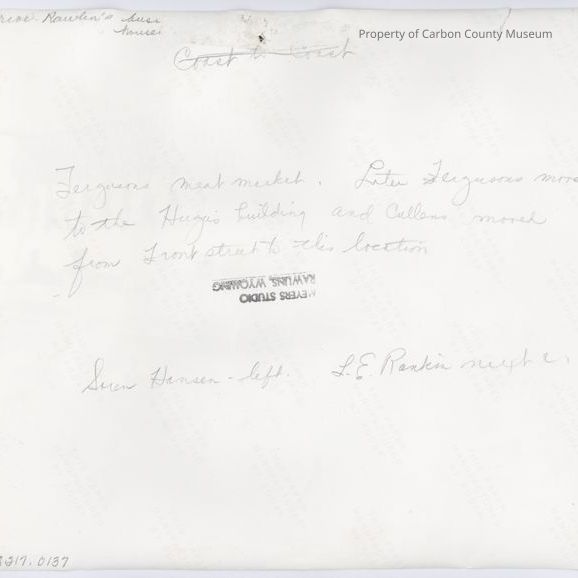 Cullen's Meat Market, 1919, Soren Hansen, Dutch Rankin, Rawlins.