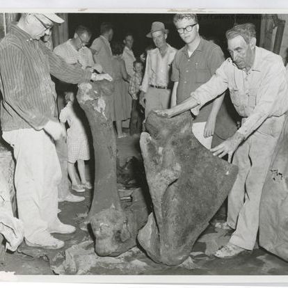 Mammoth bones recovered at a site 25 to 30 miles southwest of Rawlins, 1960.