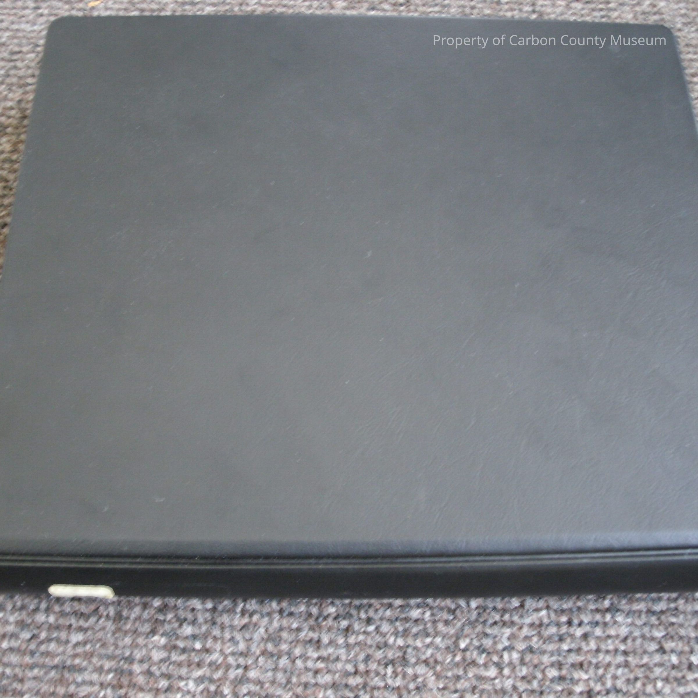A black hard cover three ring binder used as a photograph album. Book has a small beige? sticker at upper spine with the number 8 written on it in black ink. Inside front cover has small white sticker 1 3/4" x 1 1/4" marked K3 in black ink. Measures 11 3/8" x 10 1/4". Book contains clippings from various newspapers, photographs, pamphlets. Clippings discuss early day Carbon County history, although taken from papers in 1920's and 1960's. Subjects: Timber Industry; photo of Saratoga Bridge, 1965; photos of old Saratoga Bridge, ca. 1900's; Medicine Bow Lodge, 1954; Hotel Wolf 1965 and other businesses; Hobo Park; Lake Marie, 1965; interior Rawlins National Bank; , 1954, four views; Photo of Dr. John Osborne when a young man; Harry Kuykendall and John Osborne in early day electric car; newspaper photo of Medicine Bow in 1919, and Baggs Town Hall.