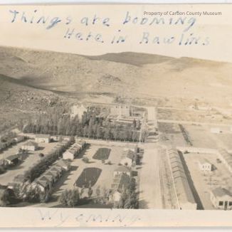 Written on print: "Things are booming here in Rawlins, Wyoming."