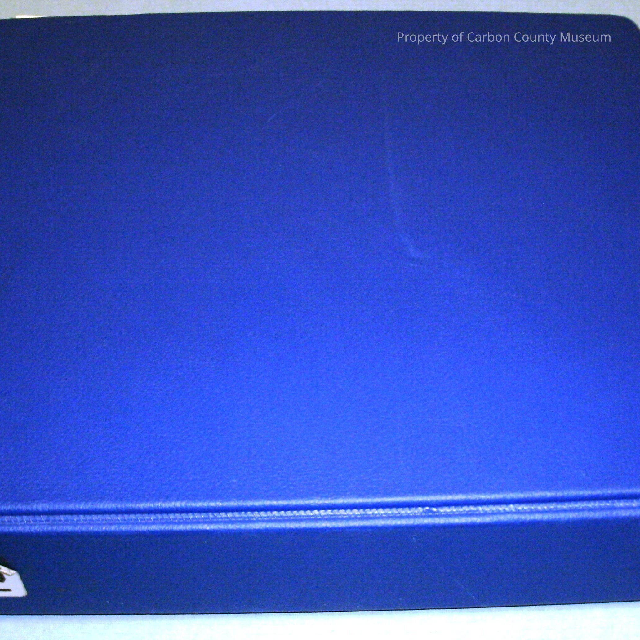 A royal blue three ring binder used as a photograph album with some clippings. Measures 11 3/8" x 10 1/4" x 1 3/4" thick. Album has a tiny square white sticker on the upper spine with the #15 printed on it in black ink. Book is composed of sections with tab dividers labeled: smelter, Ferris Haggerty, Dilliion (sic) [Dillon], Encampment, and Battle. Photos and articles cover 1900-1953. The collection begins with 5 pages bearing 12 photos of the (Leighton?) Smelter, and its surrounding area. Photos taken from 1948-1956. (Mine House over smelter Mine, and Independence Mine, furnace at smelter photographs.) There are two maps of the Leighton-Wyoming Mining Company holdings in the Encampment Mining District, South East of the Smelter. One map is hand drawn and the other (incomplete) is printed, both dated 1907. (On the back of the second page are similar photos of a poorly balanced stagecoach-the front wheels are too small. The top photo is a colored postcard made in Germany marked, "A Wyoming Stage," no date or location given. The site may have been turn of the century Walcott. Followed by a newpaper photo of the Penn-Wyoming Smelter and Tram. Black and white photographs of Battle, WY 1904-1905 and 1953. Ferris-Haggarty Mine of the Penn-WY Copper Co., Dillon, WY; Rudefeha Mine 1904-1908 during boom and 1953 remains. Booklet entitled, Long Distance Transportation of Ores by Aerial Wire Rope Tramways, by A. Leschen and Sons Rope Co., 1904. Clippings on the tramway and 2 1/2 pages of Wy State geologist, Henry C. Beeler entitled Progress in WYoming Mines, 1907. Prints of houses for employees left standing in 1953 of Ferris Haggarty Mines. (L. P. Larsen on porch); newspaper clipping of same photo; print of road to Saratoga coming down the West side of the divide to Ferris Haggarty Mines. Newspaper clipping photo of 1907 "van lines," (two teams of the Penn-Wyo Copper Co. hauling freight and ore.); print of L. P. Larsen in old Powder House doorway; Clippings on life in the Sierra Madres mining districts; letter from Helen Latham to her husband, a mine developer, dated 08/04/1910, note explains the letter was found by Larsens 08/12/1956 in a shed at the mines. Latham abandoned after less than a years work. Photos of Bill Stockey, Ray Ferris and Lewie (sic) Nielsen (sic) [Lou Nelson]. Photos, clippings, postcards of Saratoga and Encampment Railroad after 1908 (between Baggott Rocks and Encampment). Interior views of the White Dog Saloon, 1898. Letter to Ed Haggerty, 1931 from W. F. Moenke discussing poor condition of the Ferris-Haggarty Mine. Dillon section of book: Clippings on history of Dillon, newpaper clipping photos of remaining structures; black and white prints of Dillon rock used for a drilling contest; street scene of Dillon WY postcard, 1904; Two hole outhouse at Dillon, back of Al Lamarch Saloon; Lawrence Larsen and safe from Ray Ferris's Store, 1956. (Store burnt down, 1909.) Handdrawn map of Dillon, WY main street area businesses, etc.; Dillon Miner's Union; only building left in Dillon, 1953, (remains of a log cabin); clipping of history of Dillon with stagecoach, (small wheels in front and large wheels in back ) newspaper photo in front of the Dillon Hotel; clipping re: Grant Jones and Encampment history. Battle section of album contains clippings, photographs and newspaper photos of ghosttown of Battle, sledding, and snow scenes, clipping of "Uncle Jack," on skis. Encampment section of album contains clippings of stage coach leaving New Bohn Hotel, historical newspaper articles; Merritt D. Houghton fold out map of drainage and towns of Grand Encampment Mining Districts, Sierra Madre Mountain Range, includes Dillon and Ferris Haggarty Mines, measures 9 1/2" x 22 1/2" when unfolded. Shows route of Saratoga and Walcott Stage Line and the tramway; photo post cards of Scribners Famous Six white horse team in front of the Hotel Wolf, Saratoga (small wheels in front, and large wheels in back on stage coach) and Ore Team on Bridge, Encampment, 1906; two copies of the Grand Encampment Herald, dated Jan. 1, 1904, No. 42 and Aug. 14, 1908, No. 22. Both extol Encampment's potential. The 1908 issue is more history oriented. Both are good condition, but are glued into a binder page and folded to fit in.