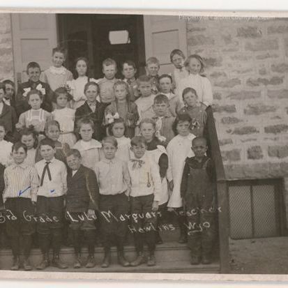 Written in white on photo front (from negative process) 3rd grade Lulu Marguars Teacher Rawlins, Wyo