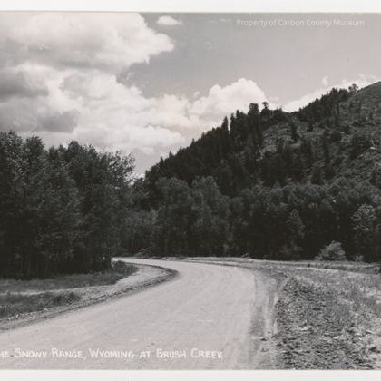 Printed on lower left in white print from negative: Highway to Snowy Range Wyoming at Brush Creek.