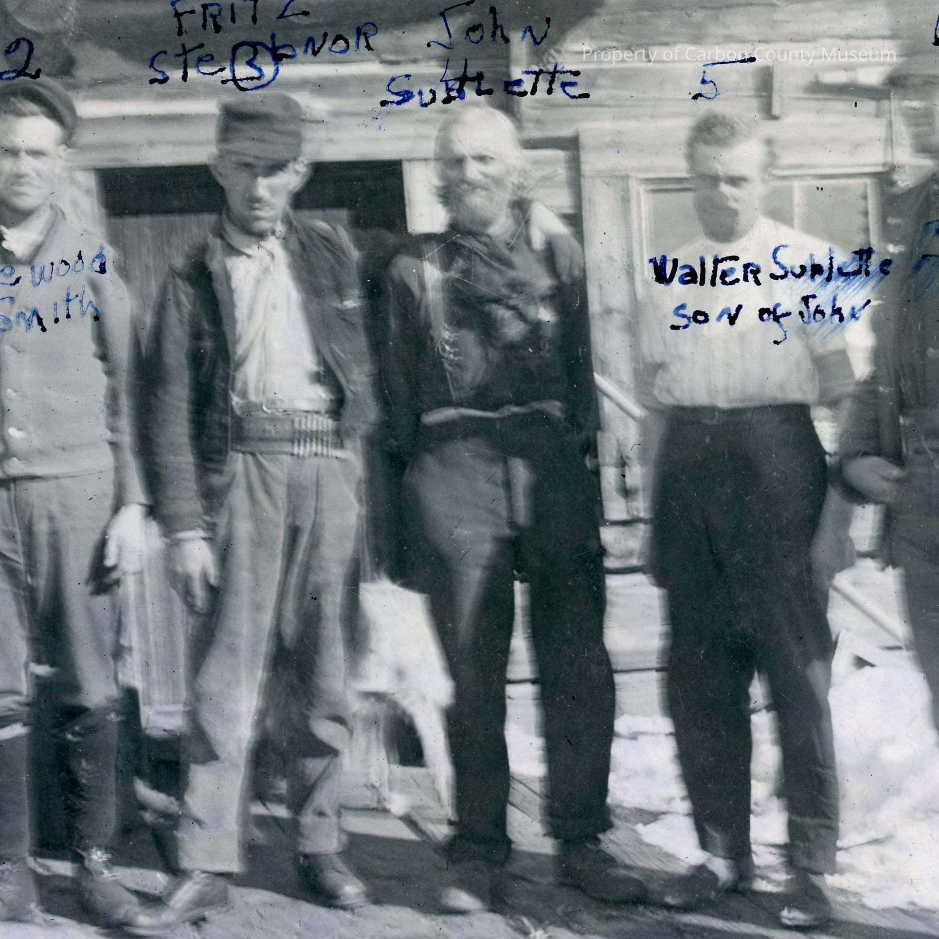 Photo of John Sublette; Walter Sublette, son of John; Roy Jackson, Lynewood Smith; Fritz Stebnor; John Veitch.