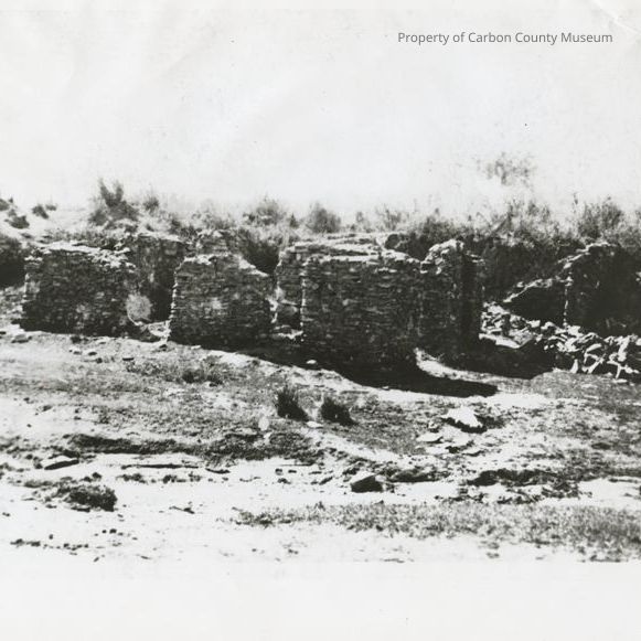 Written on back in black ink: "Browns Canyon "Fort" ruins." Stamped in black ink on back: "Frank J. Meyers, Rawlins, Wyo. Photo services."