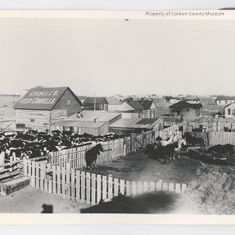 Written on back in pencil: Rawlins C R Bell's Livestock Corrals in 1906. It is located on West Spruce".