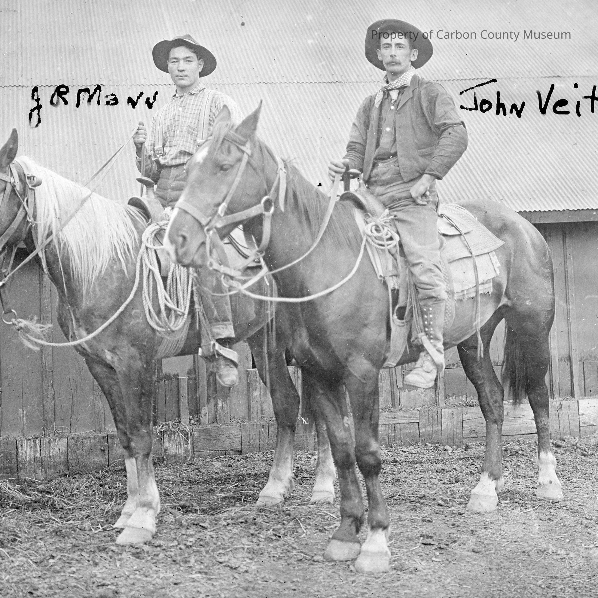 Photo of Veitch Stable Bros. for UP Coal Company at Hanna prior to 1907. J. R. Mann and John Veitch.