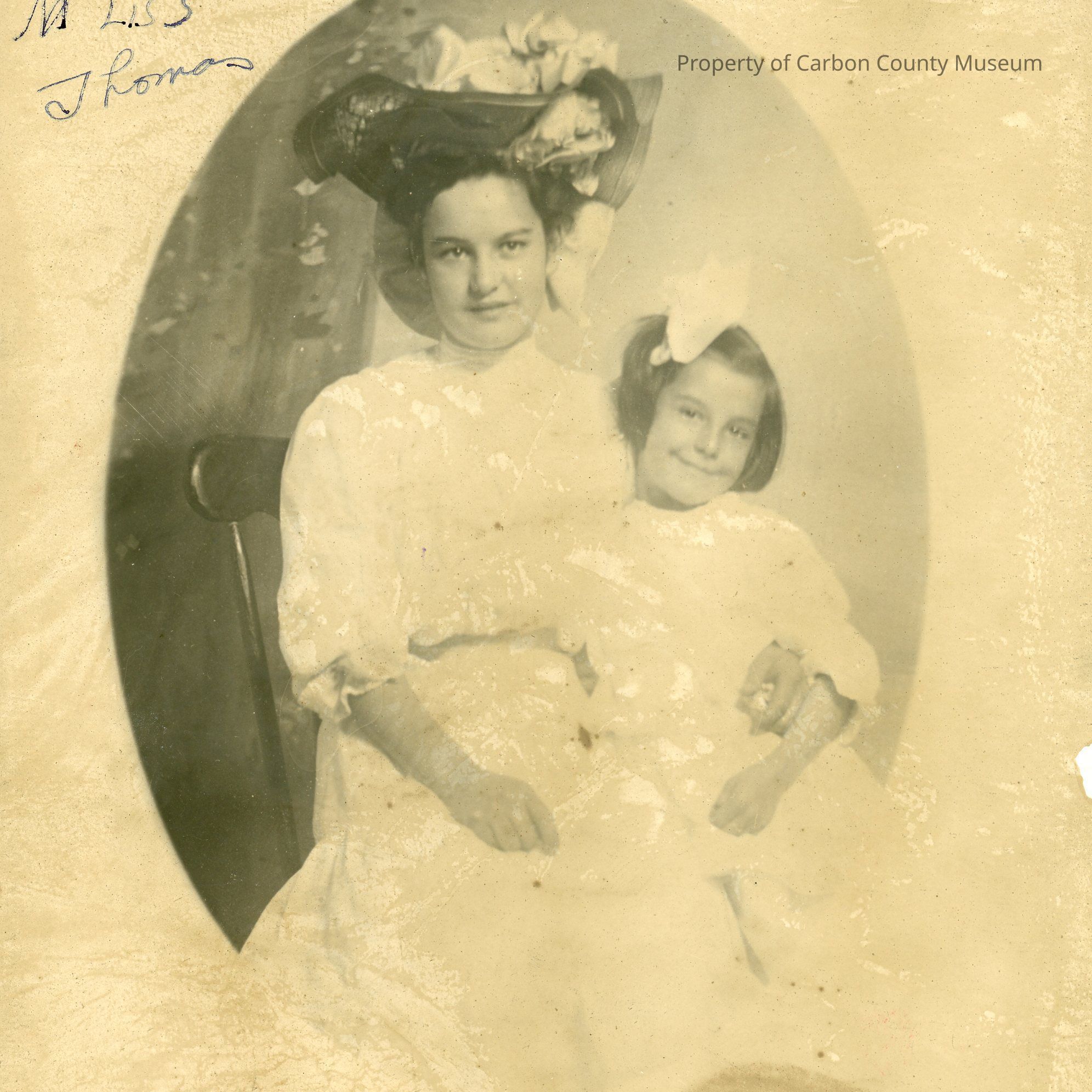 Written on emulsion surface: Blue ink in upper left: "M'liss Thomas". In black in at center bottom: "Mliss and Helen Thomas Pittsburg Expo".