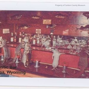 4" tall x 6" wide photograph of a display in the Rustic Bar in Saratoga, Wyoming. White border 7/16" wide on top and bottom, 1/8" wide on sides.