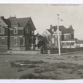 Typed on white adhesive paper on back: "The George Ferris Home at right. The Frank Ferris Home at left. Frank was the son of George"