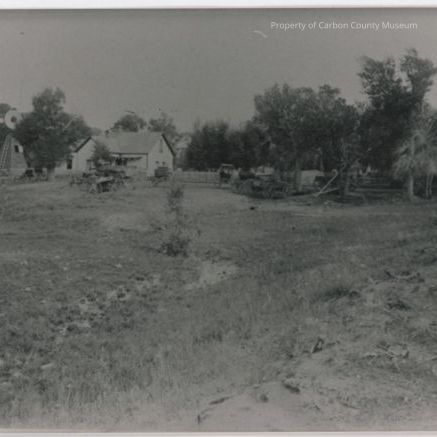 2. 3 1/2 x 5 1/8" Written on back in black ink: "Frank Shone [Schoen] Ranch. Elk Mtn." "this house burned down after the Cheesbroughs were there.