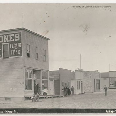 Written on original negative in lower margin: "West-Side-Main-St." "Van-Tassell, WYO."