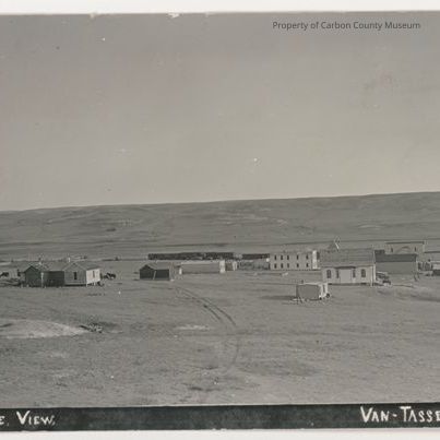 Written on original negative in lower margin: "Birds'[sic] Eye View". "Van Tassell, WYO."