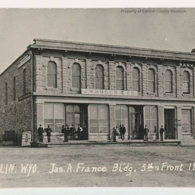 Written on original negative along lower edges: "Rawlins[sic] WYO. Jas A. France Bldg, 5th & Front. 1873, Copy by Meyers".