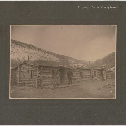 Written on back in pencil: "Mr. & Mrs. Jeppe Petersen in front of their home in Jeppes' Canyon for whom Jeppes Canyon is named. Picture taken 1902-1903"