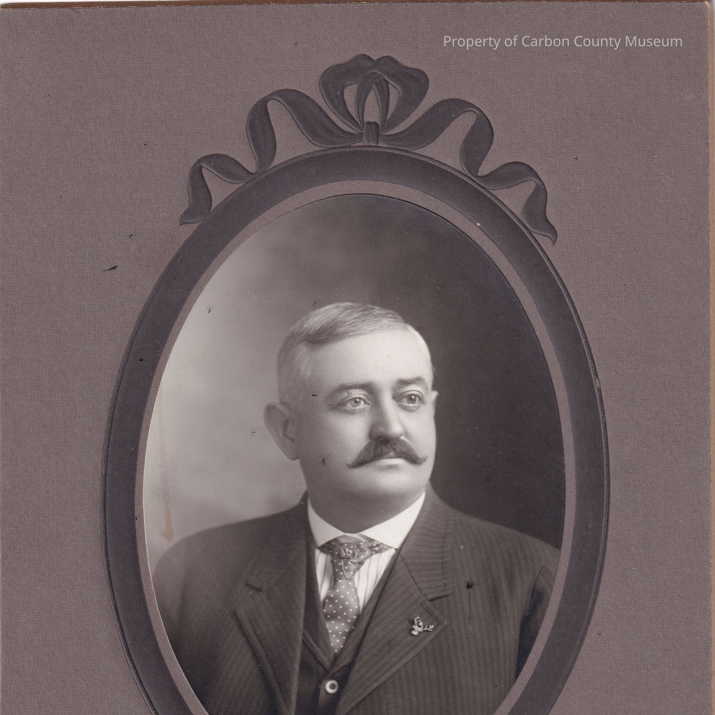 Cabinet card photograph of a man with a mustache wearing a suit. Imprint on the card reads "Photo by Jukes". Writing on the reverse reads "Charles "Chip" Reid".Collection
