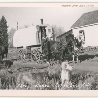 Written on original negative at lower edge: "Sheep wagon - Columbine, Colo."