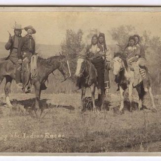 Written on back: [blue ink] "Indian at the Races" "Taken by M. D. Houghton" "Copied by State" [black ink] "Mounted" [pencil on white adhesive label pasted to back] "Indian"