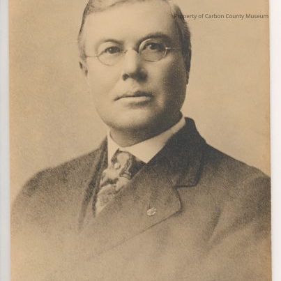 Written on image surface at center bottom in blue ink:"One of the first M.D. in Saratoga Wyo[.] Given by Geo. Baker Encampment, Wyo[.]"