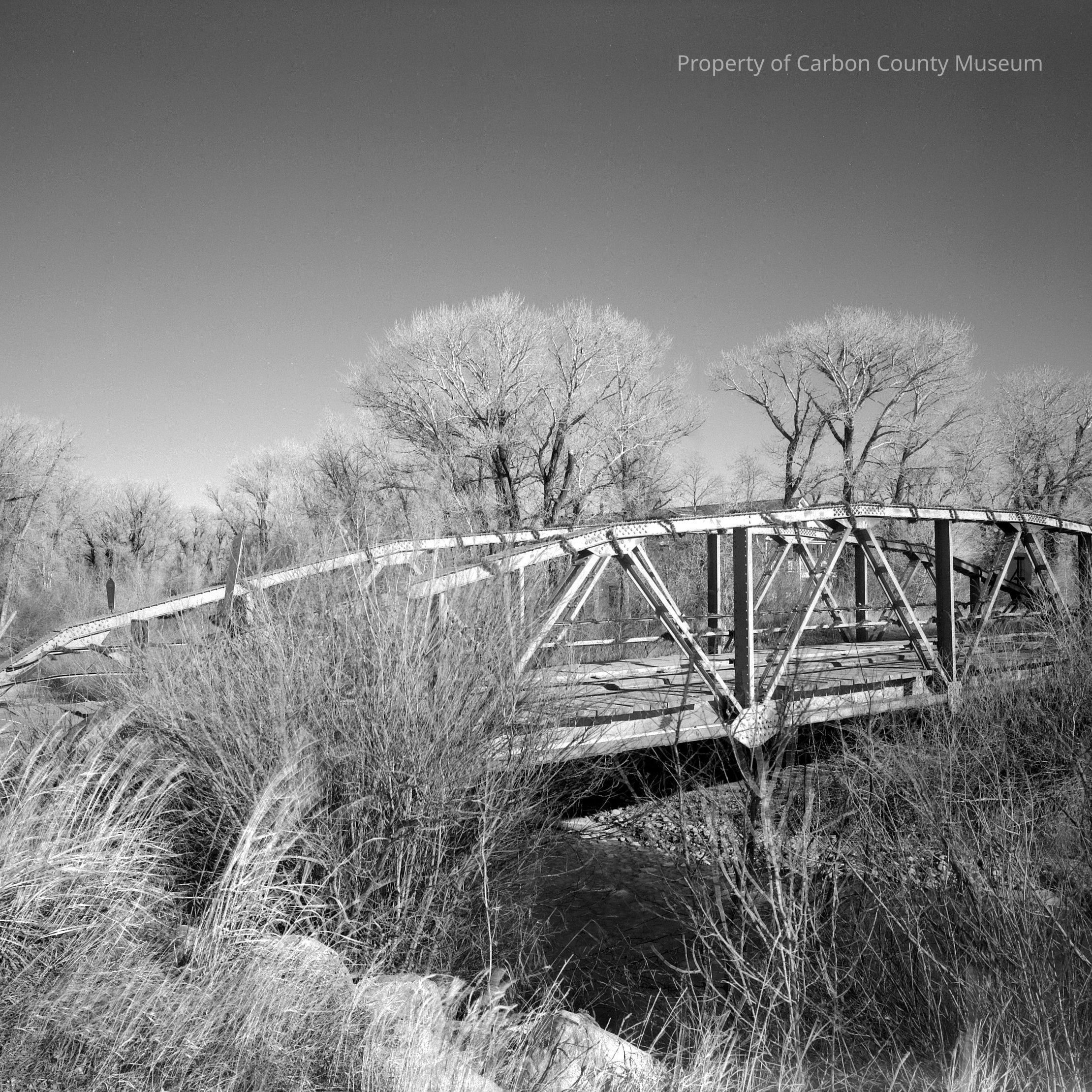 A 5" x 7" black and white print of the Medicine Bow Bridge spanning the Medicine Bow River on County Road 6-3, Elk Mountain, WY. This print designated on photographer's sheet and print front and back as Haer WY-61-6. South side of bridge. Shot from south side of Medicine Bow River.Collection