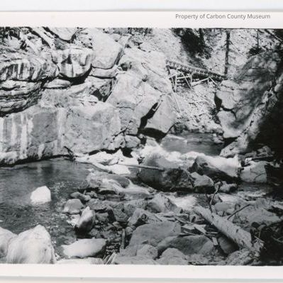 Written on back in blue ink: "Warm Spring Flume in Warm Spring Canyon".
