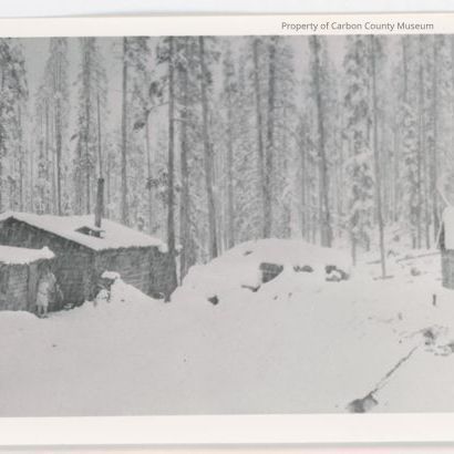 Written on back in blue ink: "Old cookhouse out of West Yellowstone, Mont. 1926"