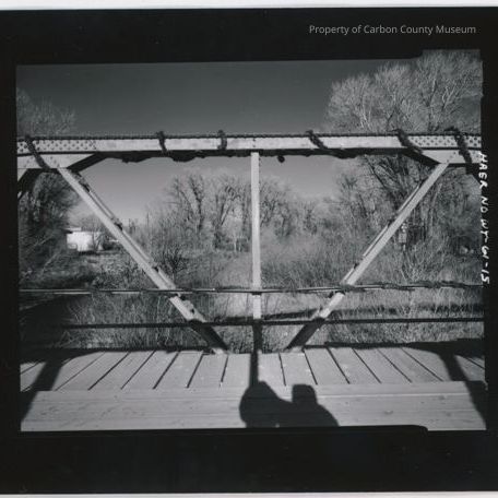 A 5" x 7" black and white print of the Medicine Bow Bridge spanning the Medicine Bow River on County Road 6-3, Elk Mountain, WY. This print designated on photographer's sheet and print front and back as Haer WY-61-15. Detail of the Warren diagonal, vertical and the Parker top cord. View to the north.Collection