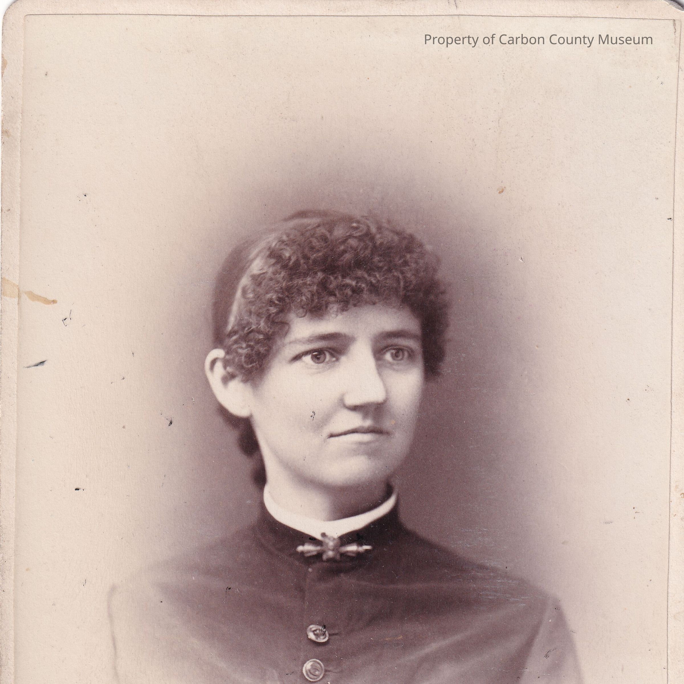 Cabinet card photograph of a young woman. Printed on the card are the words "W. A. Bradley," and "Union Pacific photo car."