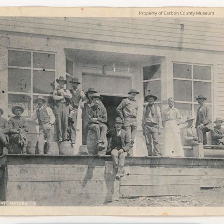 Written on back in blue ink: "George Bakers (sic) Saloon at Dillon Wyo about 1903." "Given by Geo Baker Encampment Wyo." "Duplicate" Duplicate unmounted original of 1956.254.0040