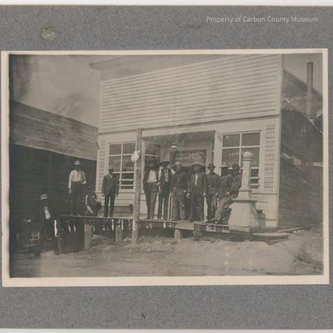 Written on back in blue ink: "Miners Exchange. Saloon belonging to George Baker at Dillon Wyo-during the mining boom- about 1906". "Given by George Baker, Encampment, Wyo."