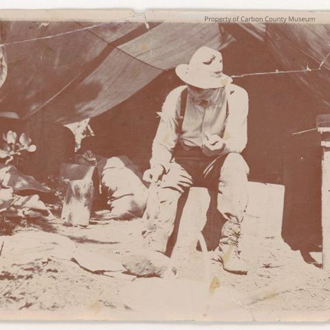 Written on back in blue ink: "Mike Collier worked in the mines as a mule skinner and was an early day prospector" "Given by Geo. Baker-Encampment, Wyo".